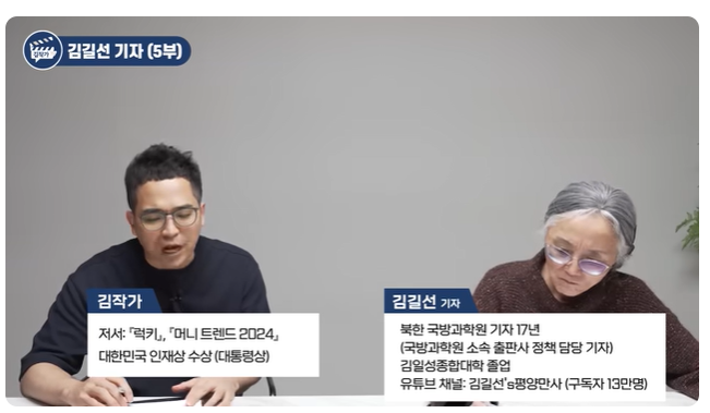 (02:09) 장마당 여론이 우리 때부터 그랬어요 내가 1990년대 총가 유일한 중장거리 미사일 종합 공장이 같은 적이 있어요 취재 그때 그 공장의 당선전 비서가 기사동 무 이거 야단 났다는 거예요 왜요 자의 공장 대대로 핵심 노동 계급으로서 어떤 미사일 들어가는 부품의 하나요 부품은 요 노동자만 깎는 대요 다 수동인데 다른 놈이지면 열 개 만들면 여덟 개가 부락 품인이 노동자가 하면 열 개 중에 두 개만 불합격 품이라는 거예요 그건 감각이 탁월한 것 같아요 이로 동자가 자 탁월한 제 복 급에 가는 그런 기능 공인데이 사람이 이제 60이 다 돼 와서이 그 아버지 기능을 아들이 물려 받더라고 애를 아버지 옆에 딱 붙여 놓고 계속 훈련을 주고 있다는 거예요 군수 부는 비밀 버장 위에서 대대 선선 복무 정책이 있습니다 그 아들이 자른 자기 방에 들어오더니 그러더래요 선전비 서동지 우리가 미국 때문에 못사고 미국 때문에 전쟁 중하고 미국 때문에