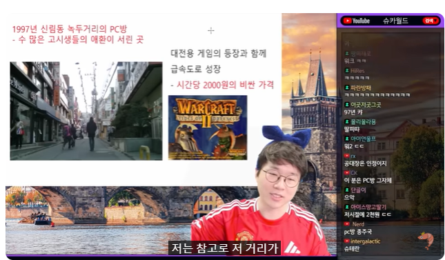 (01:11) 그리고 건대 입구도 있었고 그 당시 저 거리들은 저는 참고로 저 거리가 눈물의 거리라고 생각합니다 여기는 장마기간이 아니어도 홍수가 났죠 수많은 고시생들의 눈물이 거의 뭐 흘러다니는 곳입니다 눈물의 거리야 눈물의 거리 죄송하기도 합니다 제가 여기서 게임 10년 해서 저랑 같이 게임하던 고시생 형들 많았는데 미안해요 지금 와서 생각합니다 아 내가 형들하고 놀지 말고 형들을 보냈어야 됐어 내가 PC방을 지킬 테니 형은 들어가서 공부를 하세요 라고 보냈어야 되는데 아 자꾸 나랑 같이 지키자 그래서 아 그래요 하고 어깨 걸었다가 죄송합니다 x2 형들을 보내고 내가 지켰어야 되는데 그래서 참 죄송하게 생각합니다 그분들의 눈물이 많은 곳인데 그 당시 라떼는 얘기를 해보면 시간 당 2천원이었죠 워크래프트2 같은 대전형 게임이 등장하면서 오락실이 PC방으로 바뀌던 그런 시대였습니다 그 시절에는 고시생들의 눈물 고시생들의 파멸이라고 하면 뭐하고 정말 피눈물로 이끈