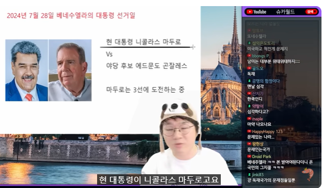(00:07) 마지막 주제는 이겁니다 부정선거와 싸우는 베네수엘라의 오늘이라는 주제를 갖고 왔는데요 베네수엘라가 지금 혼돈에 빠져 있습니다 물론 베네수엘라라 그러면 원래 혼돈의 나라 아니냐? 그것도 맞고요 바람 잘 날 없는 나라가 맞긴 합니다 항상 문제 있는 국가 그러면 대표적인 게 베네수엘라죠 포퓰리즘으로 무너졌다 이런 게 대표적인 베네수엘라의 어떤 이미지인데 그 베네수엘라가 다시 시위의 물결로 뒤덮이고 있습니다 이번 시위는 게다가 심각해요 굉장히 심각한 시위가 펼쳐지고 있습니다 또 무슨 일이 벌어진 거냐? 방금 전에 얘기했지만 어떤 선거부정에 관련된 내용인데 2024년 7월 28일 베네수엘라의 대통령 선거가 있었습니다 현 대통령이 니콜라스 마두로고요 야당 후보가 에드문도 곤잘레스라는 분이에요 마두로는 현재 재임을 했고 3선에 도전하는 중입니다 참고로 니콜라스 마두로 현 대통령은 연이은 실정을 했기 때문에 국민들의 지지가 대단히 낮아요 많이 내려갔어 이 사람은 우고 차베스의 후계자라고 스스로 얘기를 하고 대표적인 반미주의자죠 마두로의 3선에 대한 국민들의 거부 여론이 80%를 넘어갑니다