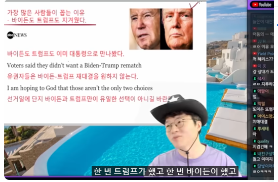 (01:09) 다 까본 패인데 이거 다시 한 번 해봐야 되냐? 바이든과 트럼프 재대결 자체를 원하지 않았는데 양쪽 다 인물이 바뀌기를 원했는데 바뀌지를 않더라는 거죠 워낙에 철옹성 같은 분들이기 때문에 공화당도 못 바꾸고 민주당도 못 바꾸고 에휴 별 수 없구만이라고 생각했는데 그 외의 인물이 등장을 하니까 뭔가 미국인들한테는 또 신선함을 줬다는 거고 특히 항상 인상을 쓰고 있는 두 아저씨하고 다르게 왠지 웃상이에요 항상 좀 뭔가 기분이 되게 좋으셔 이유는 모르겠는데 뭔가 활짝이세요 약간 쌓인 것도 같고 뭔가 느낌이 있다는 거죠 헤리스가 점점 잘 나가고 있는데 여기서 잠깐만 말씀드리면 부통령도 정해졌죠 대통령 후보도 정했지만 민주당의 부통령 공화당의 부통령들이 다 정해졌습니다 부통령이 요즘에 약간의 논란이 있어요 어떤 논란이 있냐 민주당 부통령 후보 헤리스하고 같이 나가는 월즈 후보가 총기 관련 과거에 이런 말을 했습니다 총기 소유 규제해야 된다 나 군인이야? 24년 짬밥 있어? 내가 전쟁에서 사용한 무기는 전쟁터에서만 써야지