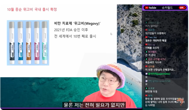 (00:07) 세 번째 주제는 비만 치료제 얘기를 한번 해봅시다 비만 치료제 위고비가 한국에 상륙을 결정했습니다 출시가 됐어요 10월 중순 비만 치료제 위고비 세계적으로 히트를 쳤던 위고비가 국내 출시를 확정했습니다 물론 저는 전혀 필요가 없지만 에헤헤헤헤헴 위고비가 뭐야 이거 오늘 처음 본 것 같아요 왜 굳이 뭐 그런 걸 먹어야 되나 뭐 이런 생각을 잠깐 하긴 하는데 위에 올리면 여기 이렇게 그 식스팩 누가 뭐라 그랬더라 마치 화덕과 같은 모습 석쇠와 같다 뭐 이런 뭐 배근육이 있긴 하지만 이 비만 치료제가 2021년 위고비 FDA 승인에 나왔어요 전 세계적으로 엄청난 히트를 쳤습니다 지금 우리나라가 열 번째 출시 국가라 그러는데 예전에 슈카월드에서 한번 나왔죠 잠깐 설명을 드리면 모르시는 분들 계실 테니까 덴마크 기업 노보 노디스크란 데가 선보였던 비만 치료제입니다 2021년 등장하고요 성분 이런 거 알 필요 없고 오젬픽 이건 당뇨 이를 활용한 비만 치료제는 위고비 우리나라에는 그거보다 조금 빠르게 삭센다라는 게 들어왔어요 비슷합니다 다만 다른 건 이번에 들어온 위고비는