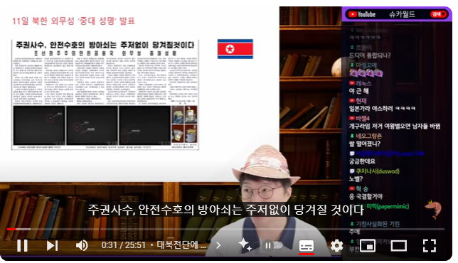 (00:07) 자 메인 주제 두 개 중에 하나는 이거는 우리나라에는 정말 중요한 문제니까 한번 가져와 봤습니다 모르면 안 될 것 같아서 가져와 봤어요 북한이 변화하고 있다 뭔가 달라졌어요 작년 한 중순부터 뭔가 달라졌어요 1년 딱 지났는데 진짜 달라진 것 같아요 무엇을 두려워하고 있는가? 북한 얘기를 잠깐 해보겠습니다 왜냐하면 지난 11일 날 엊그제 북한의 외무성이 중대 성명을 발표했습니다 주권사수, 안전수호의 방아쇠는 주저없이 당겨질 것이다 조선민주주의인민공화국 외무성 중대 성명 중대 성명 길게 써놨는데 뭐를 써놨나 보니까 그림 같은 게 있죠 얘들이 뭘 갖고 이렇게 중대하게 성명까지 했나 또 장군님 승진하셨나? 한번 봤더니 남한이 평양 상공에 삐라를 살포했다 옛날 표현으로 삐라 요즘 표현으로 대북 전단 한국은 지난 3일과 9일에 이어 10일에도 심야 시간을 노려 무인기를 평양시 중구역 상공에 침범시켜 수많은 반공화국 정치 모략 선동 삐라를 살포하는 만행을 감행했다 잠깐만 우리가 평양 상공에다가 뭘 뿌렸다고?