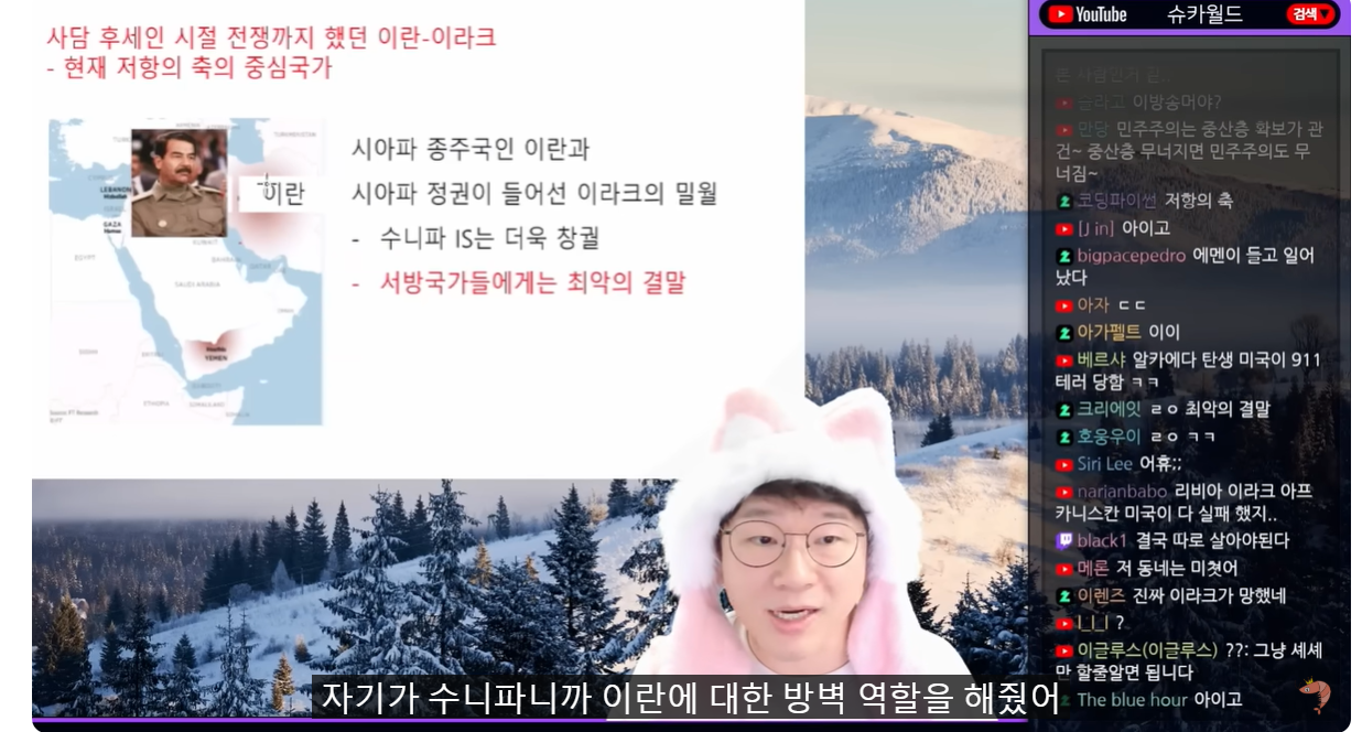 (08:05) 주변 국가를 봤을 때 쉽지 않을 것 같다는 게 너무나 경험 상 시리아 정부군을 격퇴한 반군은 게다가 미국이 테러 단체로 지정한 곳이죠 HTS, 알 졸라니 지난번에 슈카월드에 나왔던 그러다 보니까 지금 와서 보면 한마디로 제대로 된 우리가 흔히 말하는 서구식 민주주의로 전환하는 나라가 단 하나도 없었다 아랍의 봄 당시에 독재 정권들이 20년, 30년, 40년한 정권들이 그렇게 많이 무너졌어요 독재자들이 다 비극적인 최후를 맞았는데 우리가 그때 열광을 했죠 서구의 미디어, 정부도 다 열광하고 드디어 서구식 민주주의가 꽃을 피우는구나 독재 정권이 무너진다 하지만 서구식 민주주의가 승리를 거둔 나라는 단 한 나라도 없었습니다 중동 같은 경우에는 서구식 민주주의가 없어지면서 오히려 이슬람 신정정치가 들어서게 되죠 그리고 우리가 보기에 황당한데 이 나라에서 당연했던 게 신정정치 말고 투표로 우리가 흔히 생각하는 민주주의를 일으켜서 신정정치나 아니면 독재정치를 쫓아내면 되지 않냐 투표를 해보면 신정정치, 강성 이슬람주의자들이 이깁니다