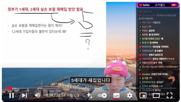 (00:08) 자, 이거는 잘 몰라요 왜냐하면 혼날 수도 있기 때문에 잘 모릅니다 교수님들이 토론한 내용을 그대로 갖고 올 테니까 여러분들이 한번 판단해 보십시오 왜냐하면 내용도 어려워 실손보험 5세대 개혁안 말부터 어렵죠 실손보험도 어렵고 5세대 개혁안도 어렵고 하여튼 이걸 지금 정부가 추진하고 있습니다 그래서 교수님들이 나와서 토론회를 개최했고요 그 토론회 자료도 배포했습니다 자, 그 내용을 한번 얘기해보도록 하겠습니다 근데 우리는 이렇게 얘기하면 어렵고 뉴스는 이걸로 봐줬을 거예요 정부가 1세대, 2세대 실손보험 재매입 방안을 발표했다 그러니까 여러분들이 가지고 있는 1세대, 2세대 실손보험을 재매입해서 5세대로 바꿔준다는 거죠 새로운 걸로 바꿔줄게 두껍아 두껍아 헌집 다오 새집 줄게 그럼 새집이 더 좋냐? 과연 내 새집은 어떤 집이냐? 5세대가 새집입니다 내 헌집은 별로니까 주시겠죠 새로운 집에 대한 내용을 한번 얘기해 보도록 하겠습니다 물론 실손보험 재매입한다는 게 뭐냐 1, 2세대 실손보험을 아까 얘기했지만 5세대로 바꿔야 된다 또는 바꾸는 재매입 방안을 얘기하는 겁니다
