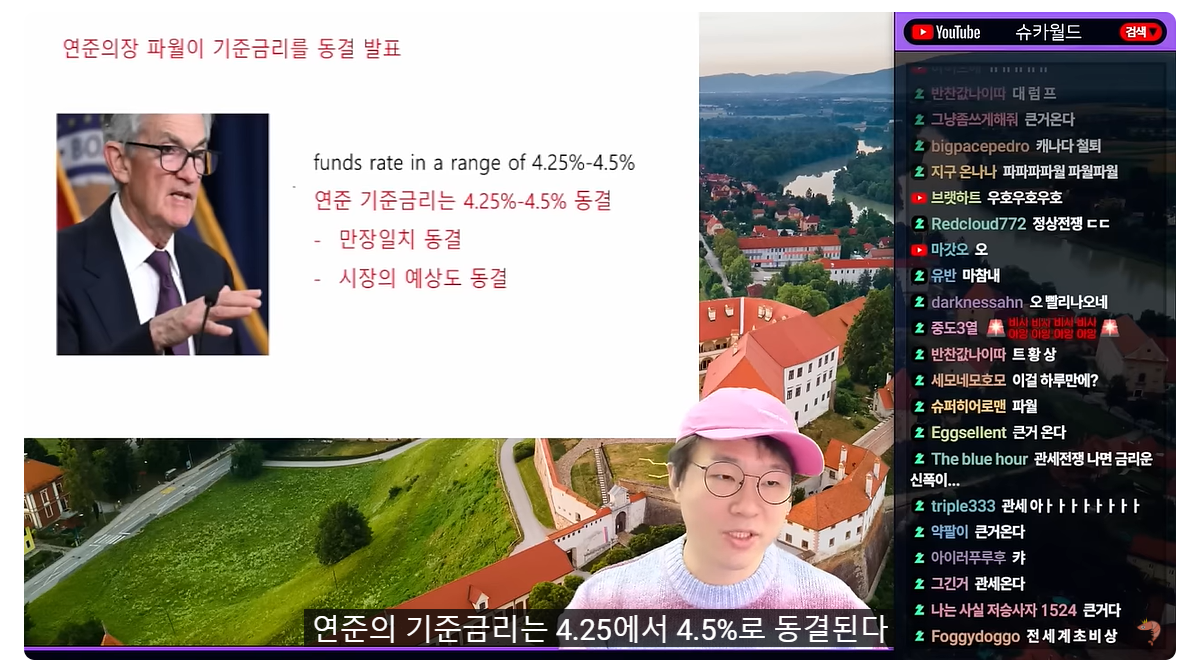 (00:08) 요거는 많이 했던 얘기니까 조금 짧게 넘어갈게요 왜냐하면 얼마 전에 미국이 기준금리를 동결했습니다 그리고 덧붙여서 드디어 관세전쟁이 본격적으로 시작이 되고 있죠 자, 그 얘기를 한번 해보겠습니다 미국이 기준금리를 동결하고 관세전쟁을 시작하고 있다 자, 일단 연준 의장 파월이 기준금리 동결을 발표했습니다 연준의 기준금리는 4.25에서 4.5%로 동결된다 만장일치 동결이었어요 시장의 예상도 동결이었고 당연히 동결인데 왜 뉴스가 되냐? 뉴스가 되는 이유가 있죠 일단 내용을 좀 보면 지난 작년 9월 이후에 미국도 나름 빠르게 금리를 내렸습니다 50bp, 25bp, 25bp 100bp를 내렸기 때문에 4% 초반에서는 조금 천천히 봐야 되는 거 아니냐? 라는 게 어떻게 보면 당연한 컨센인데 왜 뉴스가 되냐? 당연히 트럼프 대통령이 당선 이후에 연준한테 이렇게 얘기했거든요 나는 금리를 결정하는 연준의 사람들보다 내가 금리에 대해서 더 잘 안다고 생각한다 내가 더 잘해 파월보다 내가 더 잘하는데 내가 보기에 지금은 금리를 인하해야 될 때야