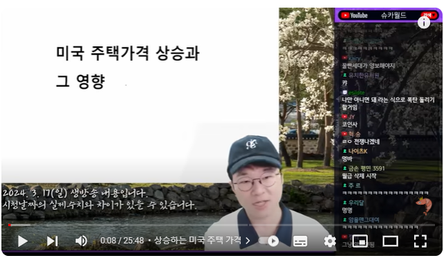 (06:48) 그에 비해서 주택 공급은 대단히 10년간 적었고요 그리고 금리가 높다 보니까 사람들이 집을 안 팔아 왜 자기는 30년 3% 받았어 근데 금리가 7% 아아 지금 모기지 금리가 그럼이 집을 팔고 다른 집을 살려면 모기지를 다시 받아야 되는데 다시 받으면 7% 그 안 팔죠 살려는 사람도 살려 그러다가 7% 그 움찔하게 하는데 공급이 안 돼요 3% 고정으로 묶긴 집들이 이거를 깨질 않는 거예요 시장에 물량으로 안 나옵니다 그냥 여기 있어요이 모기지가 워낙 싸다 보니까 집을 팔지 하고 버티니까이 집이 매물로 나오질 않는 거고 그럼 더 지으면 되지 않냐 그래서 요즘에 미국에 주택을 많이 지으려고 노력을 하는데 이번엔 건축 비용이 우리나라하고 똑같습니다여 뭐야 스카이 로케팅 이니까 스카이로 로켓 상승을 했죠 비용이 많이 올랐어 인건비도 많이 올리고 주택 건설 자재 비용이이 미친 거는 우리나라뿐만 아닙니다 어느 정도 올랐냐 주택 구매자가 감당할 수 없는 시장이 형성되었다 예를 들면 옛날에 한참 올랐던 목재 시멘트 뭐 철근 인건비 등등등등 우리나라 뭐만 하니까 뭐