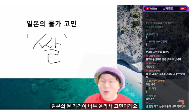 (00:07) 두 번째 얘기는 일본의 물가 얘기를 한번 해봅시다 그리고 일본의 새로운 총리가 된 이시바 시게루씨 얘기도 같이 한번 해보도록 하겠습니다 일본이 요즘에 물가에 고민이 많아요 특히 조금 이따 보여드리겠지만 무엇에 고민이 많냐? 쌀 고민이 많습니다 일본의 쌀이 왜? 놀랍게도 일본의 쌀 가격이 너무 올라서 고민이래요 아아 황당한 고민이라고 할 수 있는데 우리가 보기에는 왜냐 대한민국 지금 어떤 상황입니까? 여러분 잘 모르시죠? 쌀 가격이 폭락해서 고민이에요 아하 우리나라 농민분들 지금 논을 갈아엎어야 된다라는 말을 하고 있습니다 지금 이 순간에도 얼마까지 떨어졌대더라? 옛날에 19만원 뭐 이렇게 하던 게 지금 16만원, 17만원 이렇게 떨어져있기 때문에 물음표를 날리셔도 소용없어요 대한민국은 쌀이 떨어져서 고민이고 일본은 쌀이 올라서 고민이에요 아니, 멀지도 않은 곳에 떨어져 있는데 왜 두 나라가 어차피 쌀은, 논은 비슷하게 흉작이건 풍작이건 같이 했을 텐데 왜 이런 고민이 있냐가 오늘의 주제가 되겠습니다 왜 이런 고민이 있을까요? 정답부터 말씀드리면