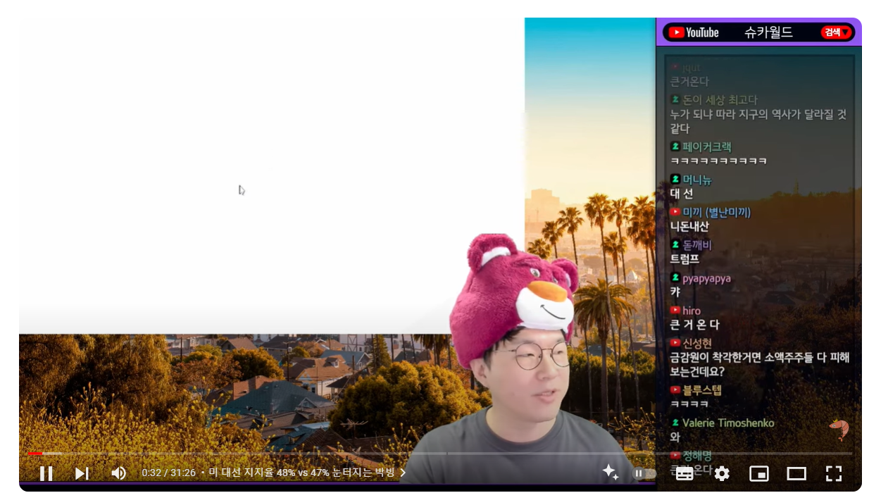 (28:06) 그렇고 오바마도 그렇고 항상 조언하는게 트럼프와 싸워야 된다 유권자를 싸우면 안 돼요 트럼프를지지 유권자들을 싸우면 안 되고 트럼프하트 이렇게 썼습니다 이든이 형 이든이 형 그 집에 있자 집에 있자 그 줌 비밀번호 바꾸자 주 줌 회의하다 그런 얘기했거든요 백악관에 바이든 두면은 괜찮을 줄 알았는데 안 되겠다 야 바이든 백간 좋은데 줌 키지 마 며칠 남았다고 좀 줌을 켜 11월 5일인데 지금 줌비 번 바꾸자 화이트는 아니 그 서포터스 서포 터스 하지 말고 바꾸자고 얘기하고 있는 그런 상황입니다 자 그래서 마지막에 이런 이슈가 커져서 그런지 몰라도 아까 얘기했지만 이번에 화요일 날 우리는 드디어요 경합 주의 결과를 보게 될 겁니다 여러분들이 이제 개표가 되는 대로 표가 쫙 나올 텐데 영상을 보고 나시면 어디를 재밌게 봐야 되냐 뭐 이런데 이기고 뭐 캘리포니아주 이겼네 뭐 텍사스가 이겼네 뭐 이런 거는 다행 이겼지 텍사스가 만약에 트럼프가 졌다 그럼 게임 끝이에요 텍사스가 트럼프가지면 게임 끝이지 아 이거 40석 있데 이거 끝이고 근데 그런 거는 별로