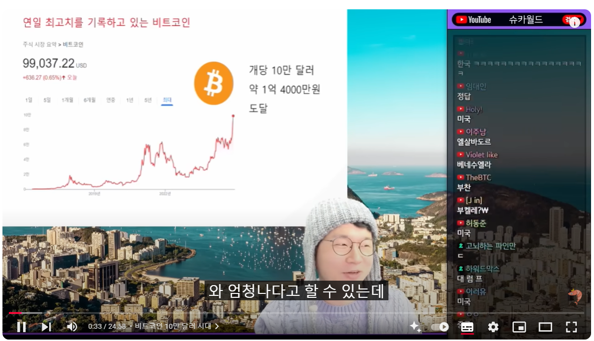 (08:25) 전 세계에서 제일 행복한 나라가 맞는 것 같아 아무리 봐도 잠깐만 얼마라고? 1억 4천 행복하네 전 세계에서 가장 행복한 나라 GDP의 30%가 비트코인인데 지금 10만 달러가 왔어 10만 달러가 와 진짜 행복하겠다 행복이 넘치는 나라야 우리나라 그랬으면 미쳤지 지금 1인당 GDP가 얼마가 된 거야? 4만 5천 달러 바로 갔지 우리는 3만 뭐 지금 5천 달러 되잖아요 근데 비트코인 따블로 갔어 근데 GDP 30%를 그걸로 갖고 있어 행복하다 영국 됐지 우리가 영국 됐어 순식간에 한 4만 5천 달러 그냥 갔는데 행복하겠네 놀랍게도 저 작은 나라가 비트코인 보위량 순위가 1위가 미국 2위가 중국 3위가 영국이에요 여기까지는 알겠어 4위가 어딥니까? 이거 대부분 못 맞힙니다 부탄이에요 전세계 비트코인 보유 4위 국가예요 77만이에요 인구가, 77만 되게 작은 나라가 비트코인을 미국, 중국, 영국 다음으로 들고 있어요 진짜 행복하실 것 같습니다 부럽다 행복하기 그지없는데 우리가 얼핏 생각하기에 인구 80만이 안되는 나라가 비트코인 보유 세계 4위가 말이 되냐